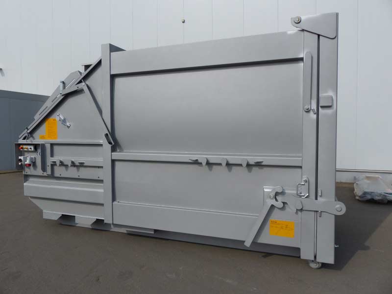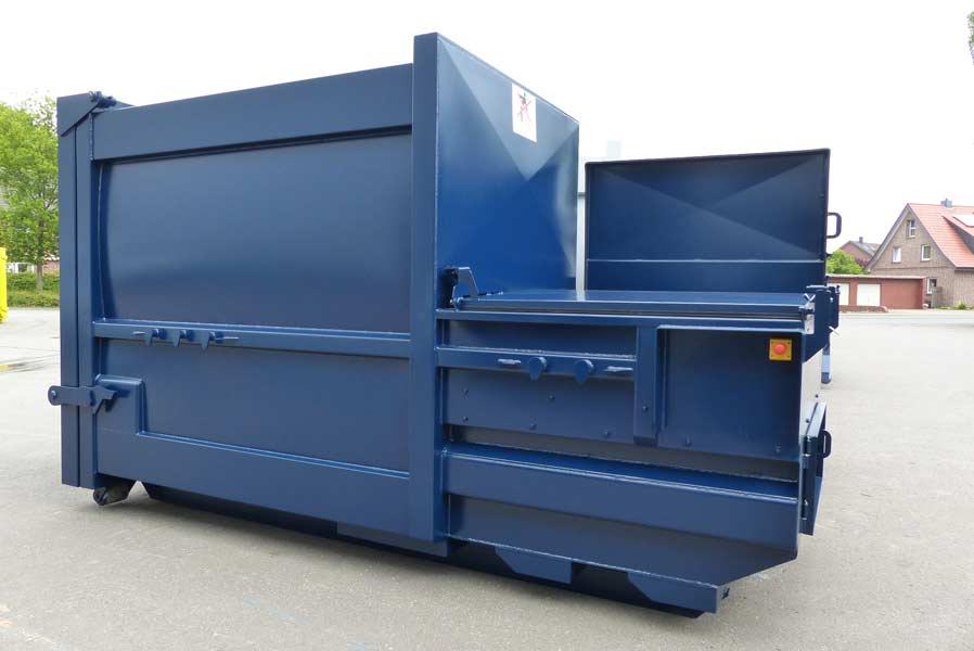 Eine besonders niedrige Einfüllöffnung ermöglicht die leichte Befüllung des PRESTO Presscontainers. Trotz hoher Verdichtung des Materials ist die Entleerung der Abfallpressen problemlos. Für die genaue Typenauswahl des Presscontainers muss die Materialgröße, die Durchsatzmenge und das zur Verfügung stehende Entsorgungs-  fahrzeug berücksichtigt werden.